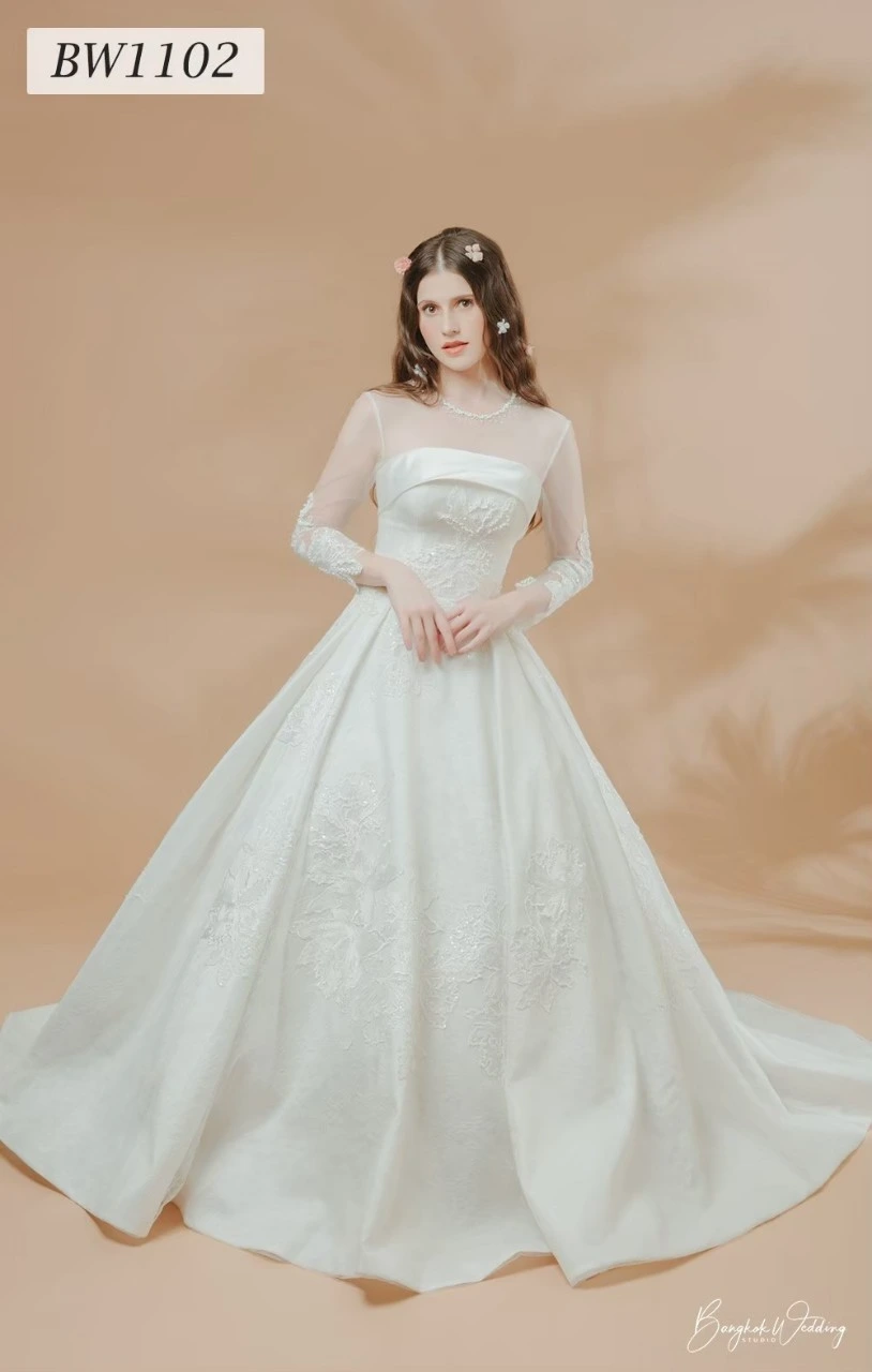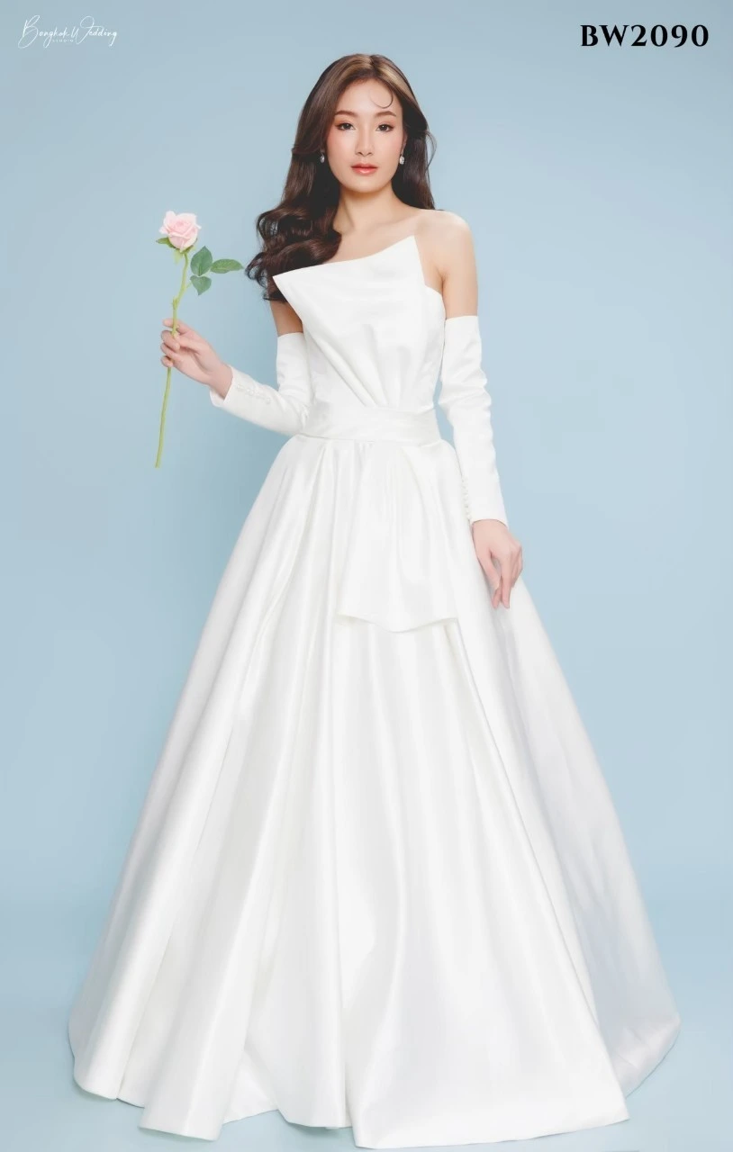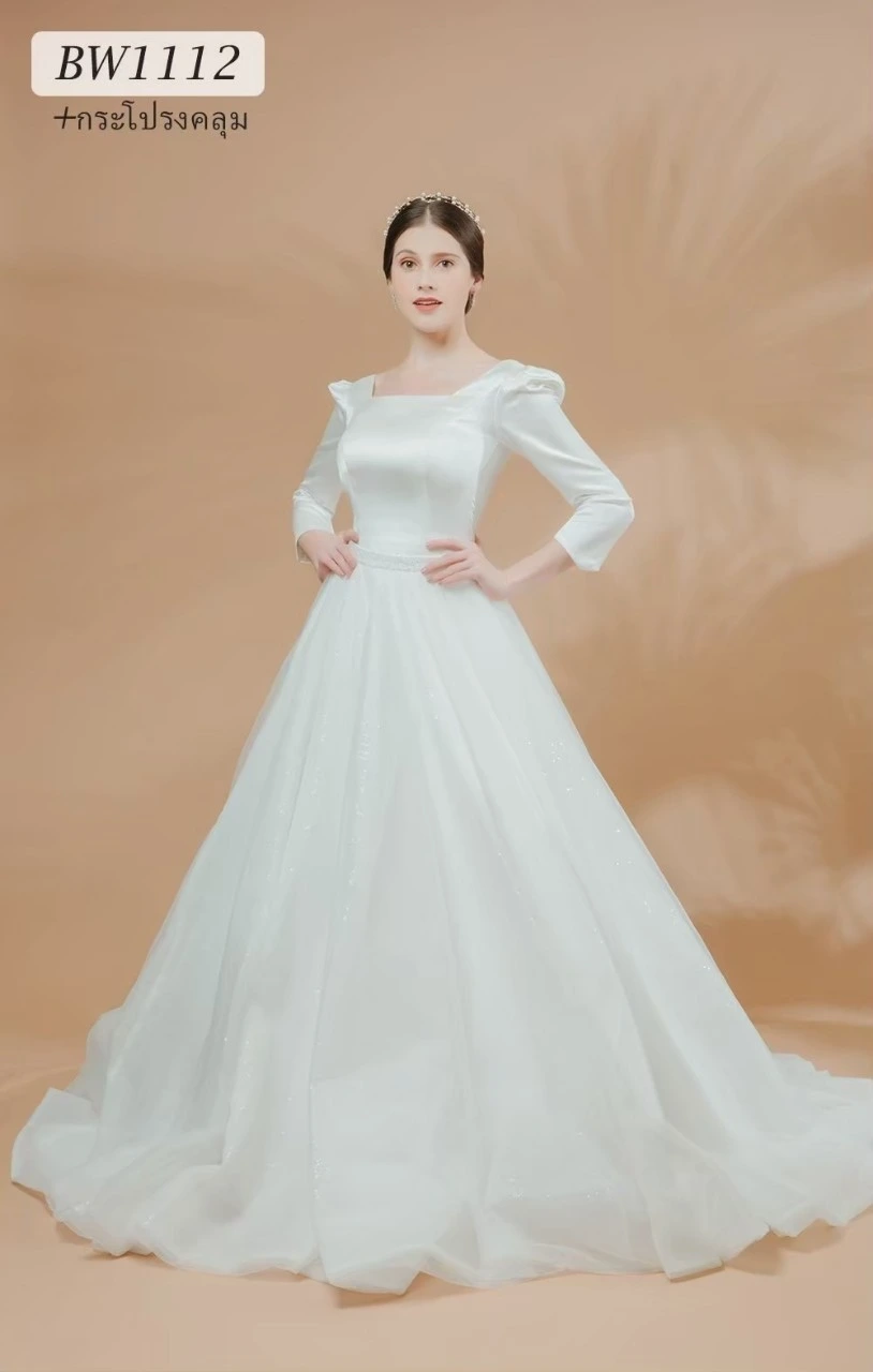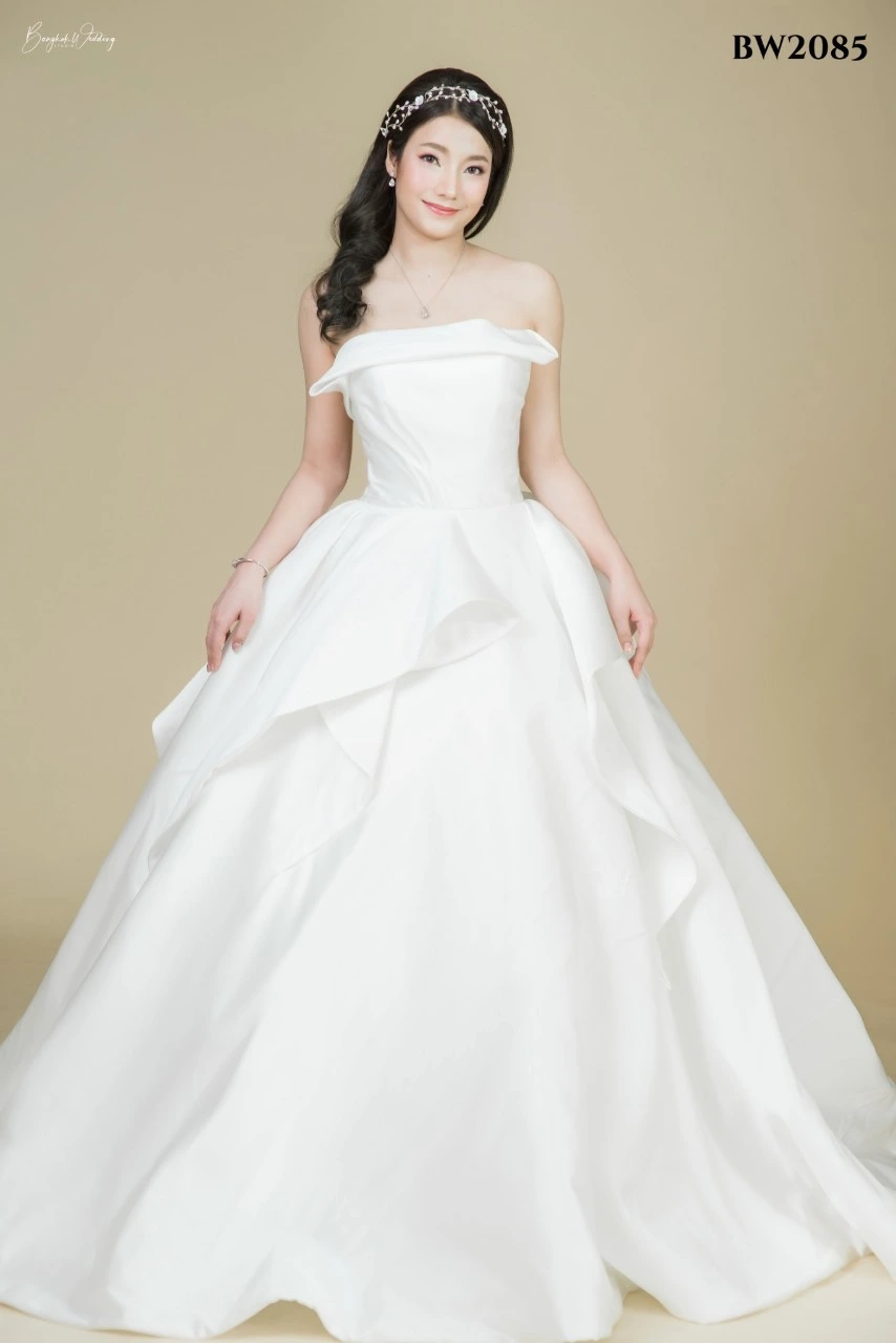 เราคัดสรรชุดเจ้าสาวเรียบหรู หลากหลายทรง ไม่ว่าจะเป็นทรงเข้ารูป ทรงเอไลน์ หรือทรงเรียบลื่นผ้าซาตินที่กำลังมาแรง ทุกชุดออกแบบมาเพื่อขับเน้นรูปร่างให้ดูเพรียว สง่างาม และถ่ายภาพขึ้นทุกมุมกล้อง