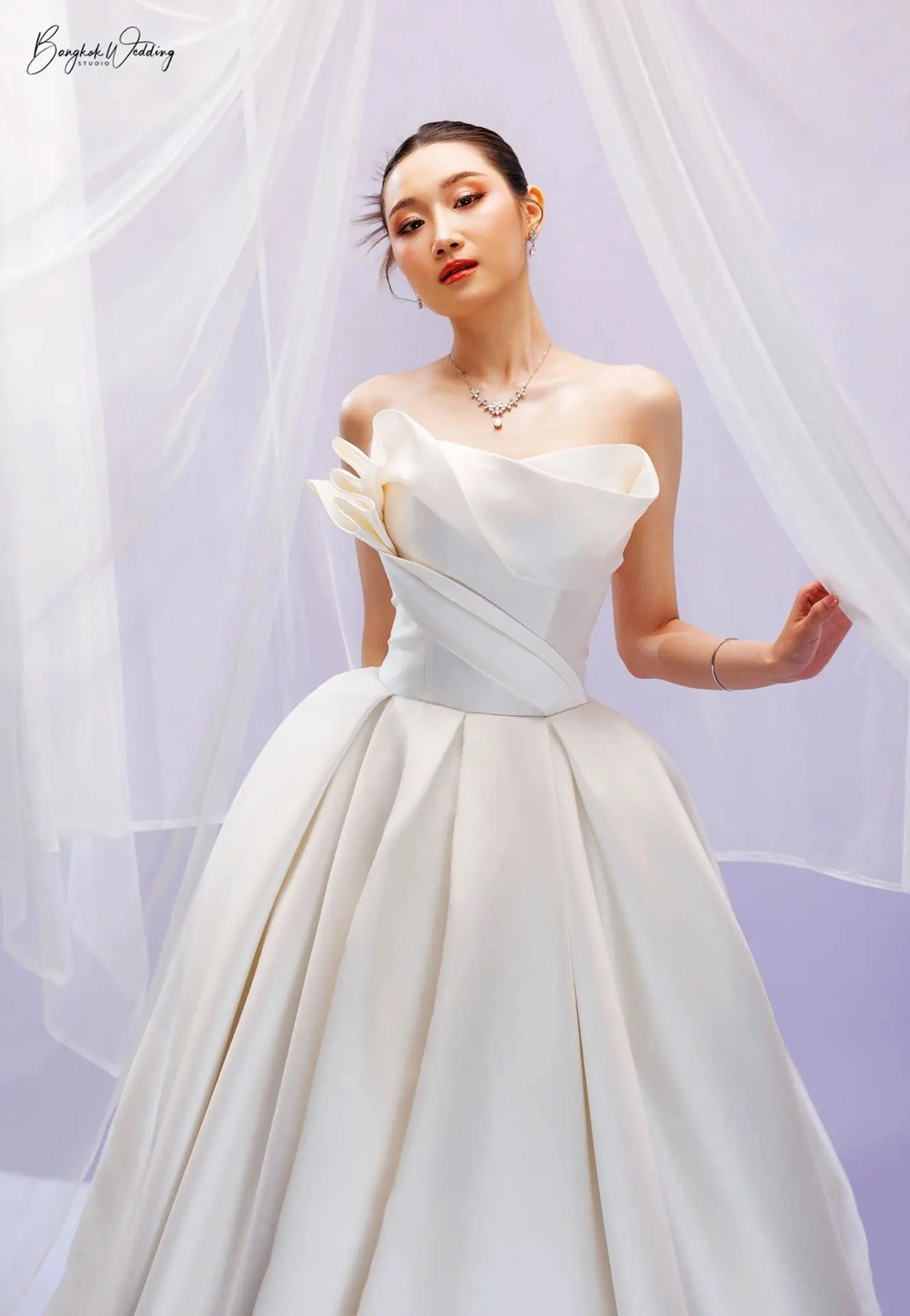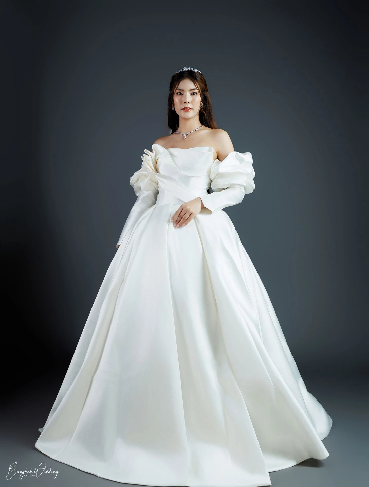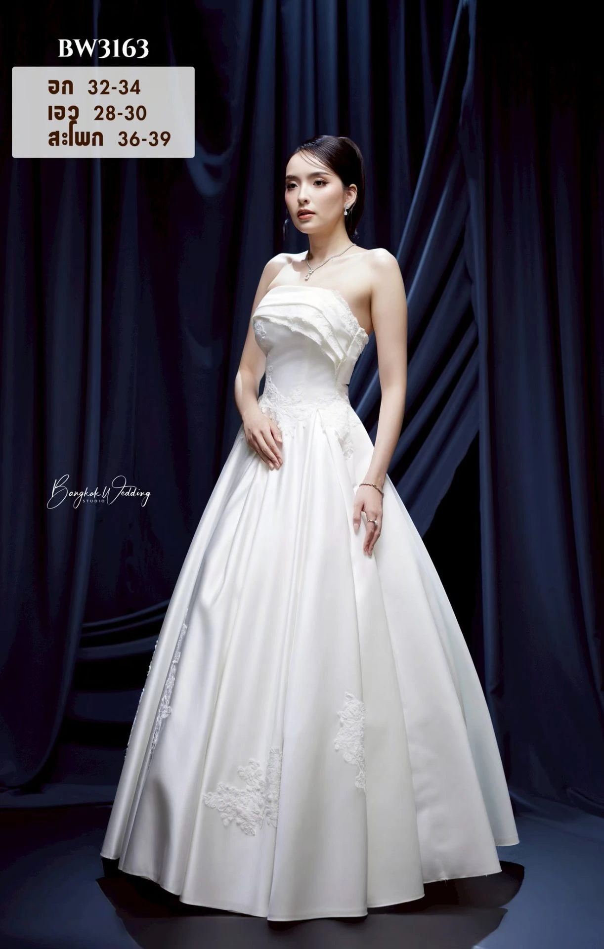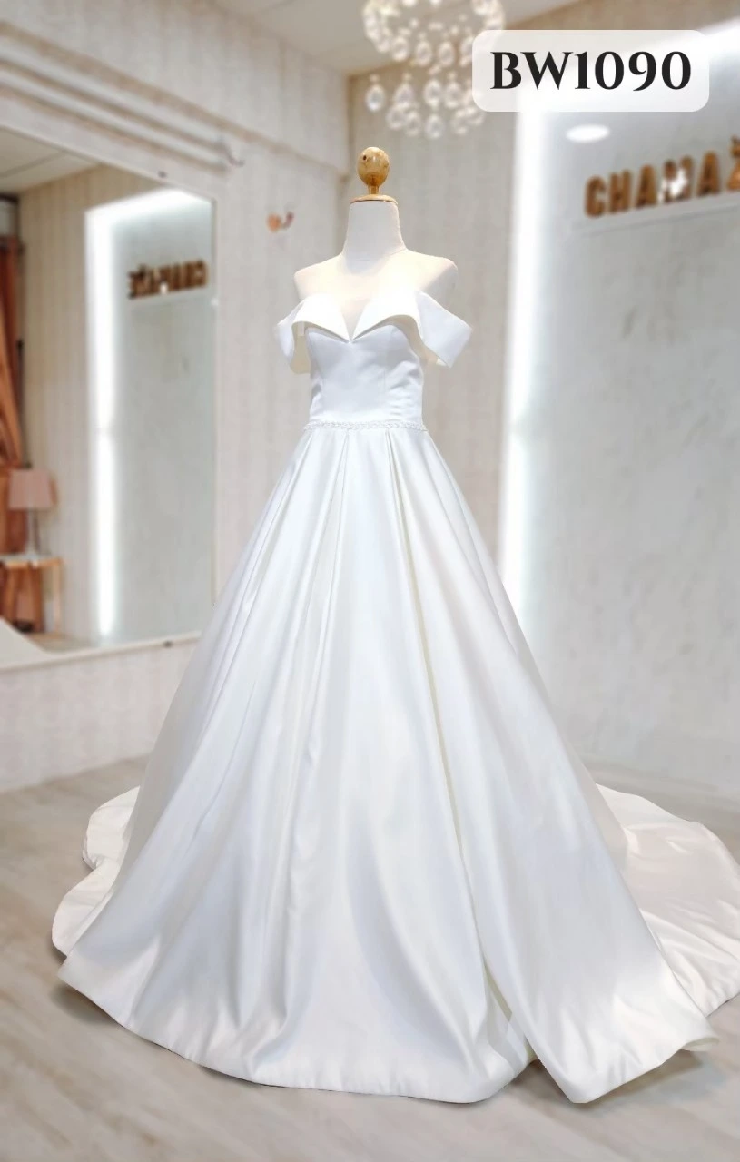 เราคัดสรรชุดเจ้าสาวเรียบหรู หลากหลายทรง ไม่ว่าจะเป็นทรงเข้ารูป ทรงเอไลน์ หรือทรงเรียบลื่นผ้าซาตินที่กำลังมาแรง ทุกชุดออกแบบมาเพื่อขับเน้นรูปร่างให้ดูเพรียว สง่างาม และถ่ายภาพขึ้นทุกมุมกล้อง